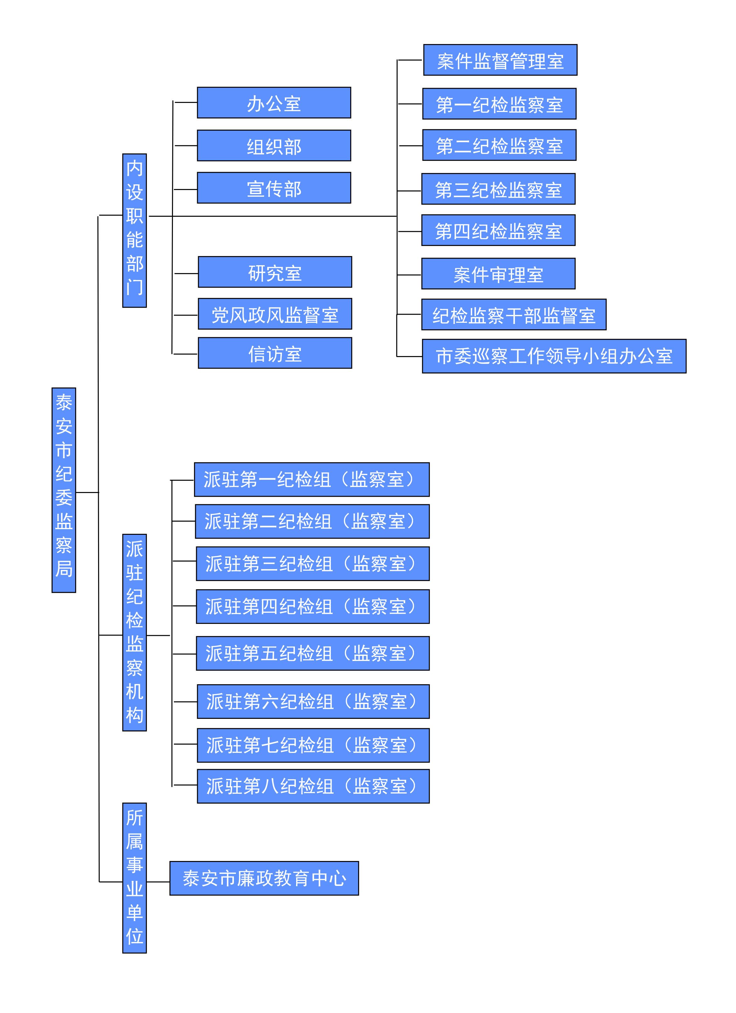 英国bet365与市监察局合署办公,实行一套工作机构、两个机关名称的体制,履行党的纪律检查和政府行政监察两种职能。机关内设13个职能部门,分别是办公室、组织部、宣传部、研究室(政策法规室)、党风政风监督室(市政府纠正行业不正之风办公室)、信访室(市国家行政机关工作人员违法违纪举报中心)、案件监督管理室、第一至第四纪检监察室、案件审理室(案件申诉复查室)、纪检监察干部监督室。设立市委巡察工作领导小组办公室,列入市委工作机构序列,为正县级,设在市纪委。市纪委监察局所属事业单位1个,为市廉政教育中心(市两规办案基地管理中心)。市纪委监察局对市级纪检监察派驻机构实行统一管理,设立8个派驻纪检组(监察室)。